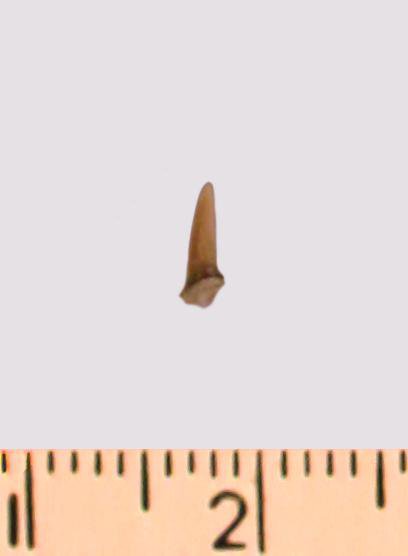 Зуб (фрагмент). Акула. Eostriatolamia gracilis (Davis, 1890). Классификация: Хордовые Chordata, Позвоночные Vertebrata, Хрящевые рыбы Chondrichthyes, Пластиножаберные Elasmobranchii