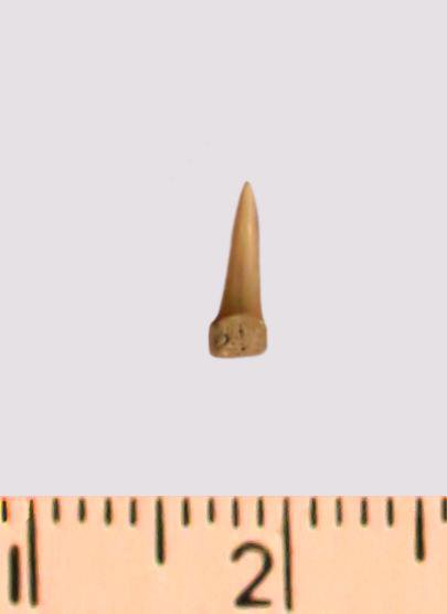 Зуб (фрагмент). Акула. Eostriatolamia gracilis (Davis, 1890). Классификация: Хордовые Chordata, Позвоночные Vertebrata, Хрящевые рыбы Chondrichthyes, Пластиножаберные Elasmobranchii