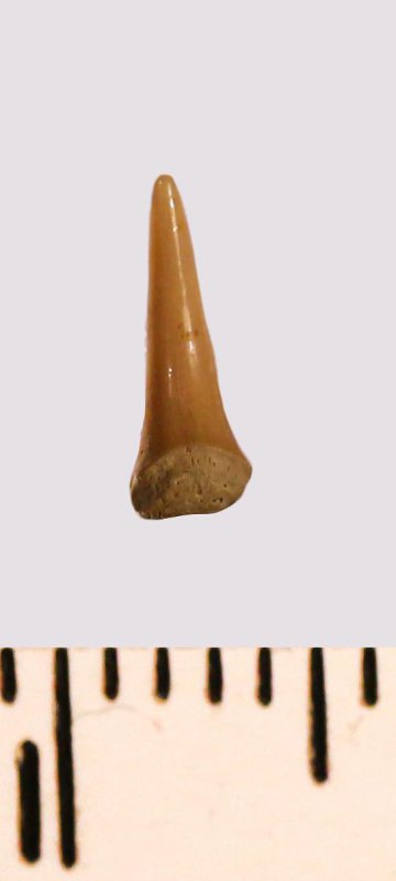 Зуб (фрагмент). Акула. Eostriatolamia gracilis (Davis, 1890). Классификация: Хордовые Chordata, Позвоночные Vertebrata, Хрящевые рыбы Chondrichthyes, Пластиножаберные Elasmobranchii