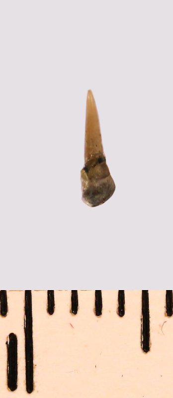 Зуб (фрагмент). Акула. Eostriatolamia gracilis (Davis, 1890). Классификация: Хордовые Chordata, Позвоночные Vertebrata, Хрящевые рыбы Chondrichthyes, Пластиножаберные Elasmobranchii
