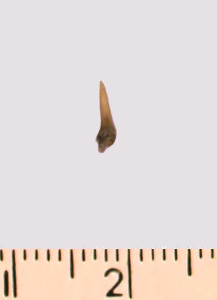 Зуб (фрагмент). Акула. Eostriatolamia gracilis (Davis, 1890). Классификация: Хордовые Chordata, Позвоночные Vertebrata, Хрящевые рыбы Chondrichthyes, Пластиножаберные Elasmobranchii