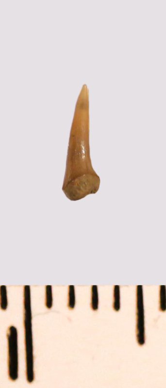 Зуб (фрагмент). Акула. Eostriatolamia gracilis (Davis, 1890). Классификация: Хордовые Chordata, Позвоночные Vertebrata, Хрящевые рыбы Chondrichthyes, Пластиножаберные Elasmobranchii