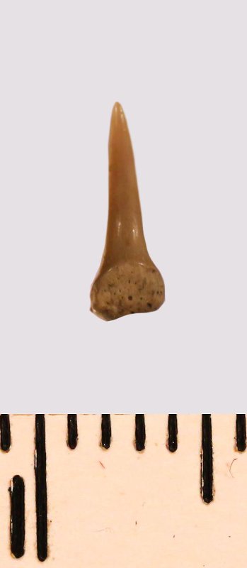 Зуб (фрагмент). Акула. Eostriatolamia gracilis (Davis, 1890). Классификация: Хордовые Chordata, Позвоночные Vertebrata, Хрящевые рыбы Chondrichthyes, Пластиножаберные Elasmobranchii