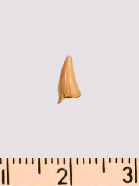 Зуб (фрагмент). Акула. Odontaspis macrorhiza (Cope) Leriche, 1902. Классификация: Хордовые Chordata, Позвоночные Vertebrata, Хрящевые рыбы Chondrichthyes, Пластиножаберные Elasmobranchii