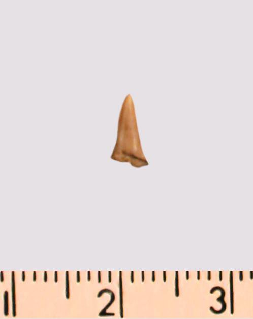 Зуб (фрагмент). Акула. Odontaspis macrorhiza (Cope) Leriche, 1902. Классификация: Хордовые Chordata, Позвоночные Vertebrata, Хрящевые рыбы Chondrichthyes, Пластиножаберные Elasmobranchii