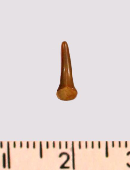 Зуб (фрагмент). Акула. Eostriatolamia gracilis (Davis, 1890). Классификация: Хордовые Chordata, Позвоночные Vertebrata, Хрящевые рыбы Chondrichthyes, Пластиножаберные Elasmobranchii