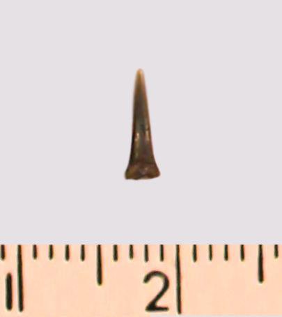 Зуб (фрагмент). Акула. Eostriatolamia gracilis (Davis, 1890). Классификация: Хордовые Chordata, Позвоночные Vertebrata, Хрящевые рыбы Chondrichthyes, Пластиножаберные Elasmobranchii