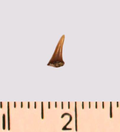Зуб (фрагмент). Акула. Eostriatolamia gracilis (Davis, 1890). Классификация: Хордовые Chordata, Позвоночные Vertebrata, Хрящевые рыбы Chondrichthyes, Пластиножаберные Elasmobranchii