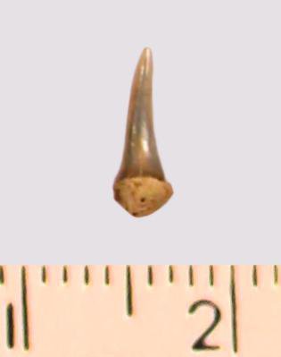 Зуб (фрагмент). Акула. Eostriatolamia gracilis (Davis, 1890). Классификация: Хордовые Chordata, Позвоночные Vertebrata, Хрящевые рыбы Chondrichthyes, Пластиножаберные Elasmobranchii