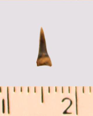 Зуб (фрагмент). Акула. Eostriatolamia gracilis (Davis, 1890). Классификация: Хордовые Chordata, Позвоночные Vertebrata, Хрящевые рыбы Chondrichthyes, Пластиножаберные Elasmobranchii