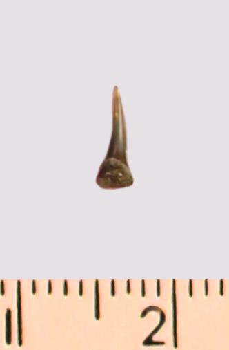 Зуб (фрагмент). Акула. Eostriatolamia gracilis (Davis, 1890). Классификация: Хордовые Chordata, Позвоночные Vertebrata, Хрящевые рыбы Chondrichthyes, Пластиножаберные Elasmobranchii