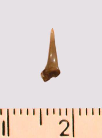 Зуб (фрагмент). Акула. Eostriatolamia gracilis (Davis, 1890). Классификация: Хордовые Chordata, Позвоночные Vertebrata, Хрящевые рыбы Chondrichthyes, Пластиножаберные Elasmobranchii