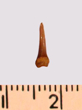 Зуб (фрагмент). Акула. Eostriatolamia gracilis (Davis, 1890). Классификация: Хордовые Chordata, Позвоночные Vertebrata, Хрящевые рыбы Chondrichthyes, Пластиножаберные Elasmobranchii