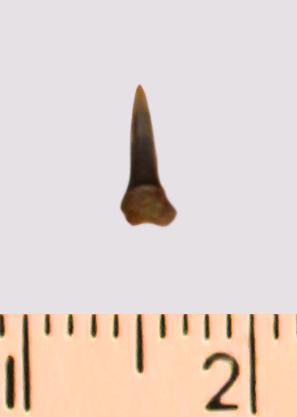 Зуб (фрагмент). Акула. Eostriatolamia gracilis (Davis, 1890). Классификация: Хордовые Chordata, Позвоночные Vertebrata, Хрящевые рыбы Chondrichthyes, Пластиножаберные Elasmobranchii