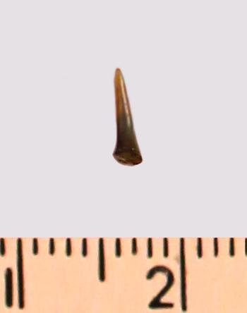 Зуб (фрагмент). Акула. Eostriatolamia gracilis (Davis, 1890). Классификация: Хордовые Chordata, Позвоночные Vertebrata, Хрящевые рыбы Chondrichthyes, Пластиножаберные Elasmobranchii