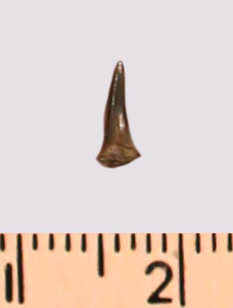 Зуб (фрагмент). Акула. Eostriatolamia gracilis (Davis, 1890). Классификация: Хордовые Chordata, Позвоночные Vertebrata, Хрящевые рыбы Chondrichthyes, Пластиножаберные Elasmobranchii