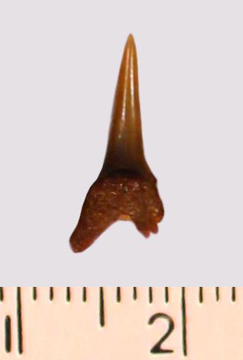 Зуб. Акула. Eostriatolamia gracilis (Davis, 1890). Классификация: Хордовые Chordata, Позвоночные Vertebrata, Хрящевые рыбы Chondrichthyes, Пластиножаберные Elasmobranchii