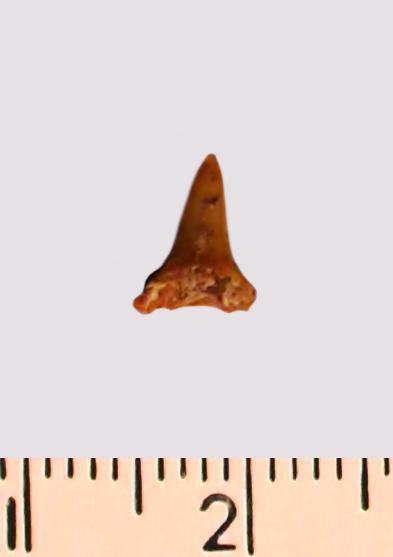 Зуб (фрагмент). Акула. Odontaspis macrorhiza (Cope) Leriche, 1902. Классификация: Хордовые Chordata, Позвоночные Vertebrata, Хрящевые рыбы Chondrichthyes, Пластиножаберные Elasmobranchii