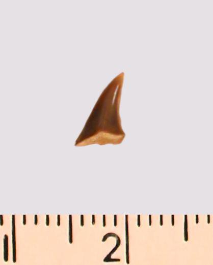 Зуб (фрагмент). Акула. Odontaspis macrorhiza (Cope) Leriche, 1902. Классификация: Хордовые Chordata, Позвоночные Vertebrata, Хрящевые рыбы Chondrichthyes, Пластиножаберные Elasmobranchii