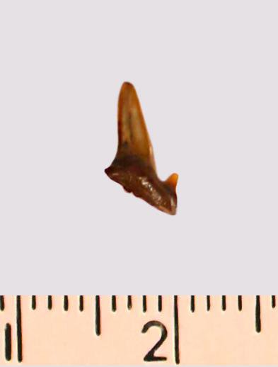 Зуб (фрагмент). Акула. Odontaspis macrorhiza (Cope) Leriche, 1902. Классификация: Хордовые Chordata, Позвоночные Vertebrata, Хрящевые рыбы Chondrichthyes, Пластиножаберные Elasmobranchii