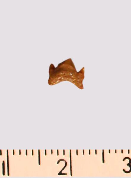 Зуб (фрагмент). Акула. Odontaspis macrorhiza (Cope) Leriche, 1902. Классификация: Хордовые Chordata, Позвоночные Vertebrata, Хрящевые рыбы Chondrichthyes, Пластиножаберные Elasmobranchii