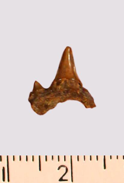 Зуб. Акула. Odontaspis macrorhiza (Cope) Leriche, 1902. Классификация: Хордовые Chordata, Позвоночные Vertebrata, Хрящевые рыбы Chondrichthyes, Пластиножаберные Elasmobranchii
