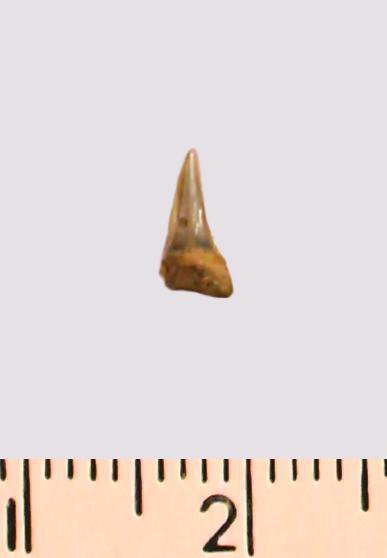 Зуб (фрагмент). Акула. Odontaspis macrorhiza (Cope) Leriche, 1902. Классификация: Хордовые Chordata, Позвоночные Vertebrata, Хрящевые рыбы Chondrichthyes, Пластиножаберные Elasmobranchii