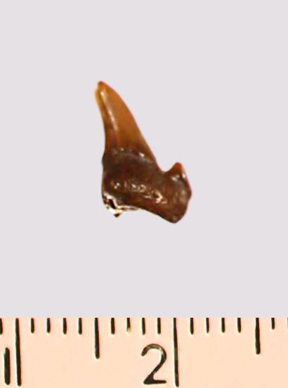 Зуб. Акула. Odontaspis macrorhiza (Cope) Leriche, 1902. Классификация: Хордовые Chordata, Позвоночные Vertebrata, Хрящевые рыбы Chondrichthyes, Пластиножаберные Elasmobranchii