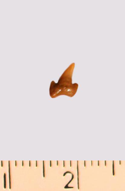 Зуб. Акула. Odontaspis macrorhiza (Cope) Leriche, 1902. Классификация: Хордовые Chordata, Позвоночные Vertebrata, Хрящевые рыбы Chondrichthyes, Пластиножаберные Elasmobranchii