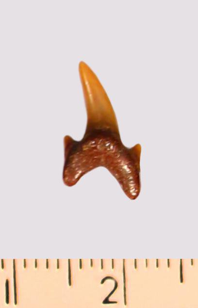 Зуб. Акула. Odontaspis macrorhiza (Cope) Leriche, 1902. Классификация: Хордовые Chordata, Позвоночные Vertebrata, Хрящевые рыбы Chondrichthyes, Пластиножаберные Elasmobranchii