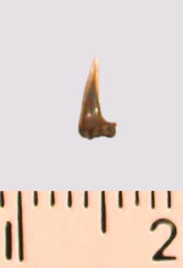 Зуб (фрагмент). Акула. Eostriatolamia gracilis (Davis, 1890). Классификация: Хордовые Chordata, Позвоночные Vertebrata, Хрящевые рыбы Chondrichthyes, Пластиножаберные Elasmobranchii