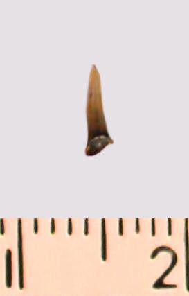 Зуб (фрагмент). Акула. Eostriatolamia gracilis (Davis, 1890). Классификация: Хордовые Chordata, Позвоночные Vertebrata, Хрящевые рыбы Chondrichthyes, Пластиножаберные Elasmobranchii