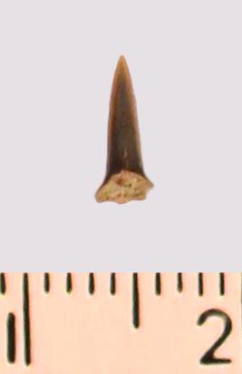 Зуб (фрагмент). Акула. Eostriatolamia gracilis (Davis, 1890). Классификация: Хордовые Chordata, Позвоночные Vertebrata, Хрящевые рыбы Chondrichthyes, Пластиножаберные Elasmobranchii