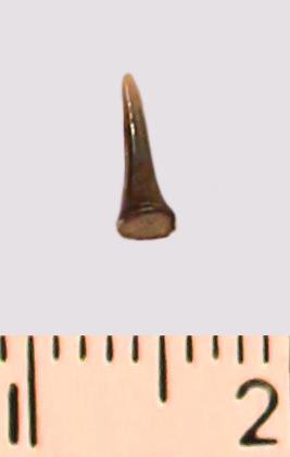 Зуб (фрагмент). Акула. Eostriatolamia gracilis (Davis, 1890). Классификация: Хордовые Chordata, Позвоночные Vertebrata, Хрящевые рыбы Chondrichthyes, Пластиножаберные Elasmobranchii
