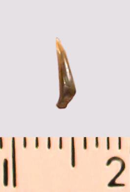 Зуб (фрагмент). Акула. Eostriatolamia gracilis (Davis, 1890). Классификация: Хордовые Chordata, Позвоночные Vertebrata, Хрящевые рыбы Chondrichthyes, Пластиножаберные Elasmobranchii