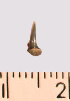 Зуб (фрагмент). Акула. Eostriatolamia gracilis (Davis, 1890). Классификация: Хордовые Chordata, Позвоночные Vertebrata, Хрящевые рыбы Chondrichthyes, Пластиножаберные Elasmobranchii