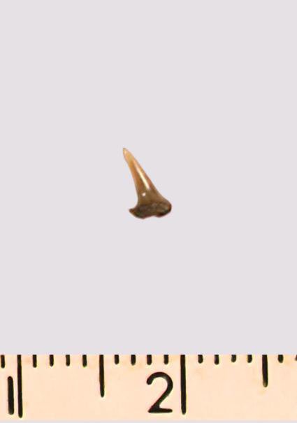 Зуб (фрагмент). Акула. Eostriatolamia gracilis (Davis, 1890). Классификация: Хордовые Chordata, Позвоночные Vertebrata, Хрящевые рыбы Chondrichthyes, Пластиножаберные Elasmobranchii