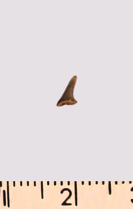 Зуб (фрагмент). Акула. Eostriatolamia gracilis (Davis, 1890). Классификация: Хордовые Chordata, Позвоночные Vertebrata, Хрящевые рыбы Chondrichthyes, Пластиножаберные Elasmobranchii