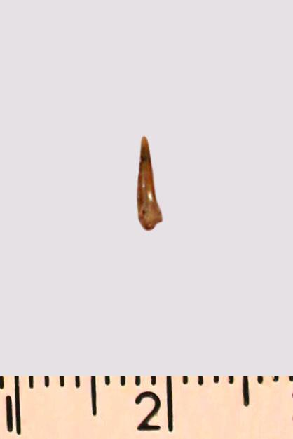 Зуб (фрагмент). Акула. Eostriatolamia gracilis (Davis, 1890). Классификация: Хордовые Chordata, Позвоночные Vertebrata, Хрящевые рыбы Chondrichthyes, Пластиножаберные Elasmobranchii