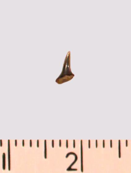 Зуб (фрагмент). Акула. Eostriatolamia gracilis (Davis, 1890). Классификация: Хордовые Chordata, Позвоночные Vertebrata, Хрящевые рыбы Chondrichthyes, Пластиножаберные Elasmobranchii