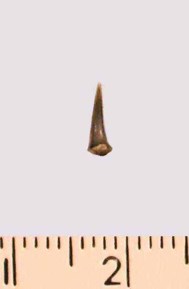 Зуб (фрагмент). Акула. Eostriatolamia gracilis (Davis, 1890). Классификация: Хордовые Chordata, Позвоночные Vertebrata, Хрящевые рыбы Chondrichthyes, Пластиножаберные Elasmobranchii