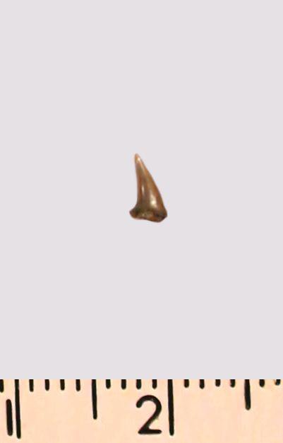 Зуб (фрагмент). Акула. Eostriatolamia gracilis (Davis, 1890). Классификация: Хордовые Chordata, Позвоночные Vertebrata, Хрящевые рыбы Chondrichthyes, Пластиножаберные Elasmobranchii