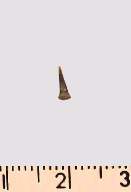 Зуб (фрагмент). Акула. Eostriatolamia gracilis (Davis, 1890). Классификация: Хордовые Chordata, Позвоночные Vertebrata, Хрящевые рыбы Chondrichthyes, Пластиножаберные Elasmobranchii