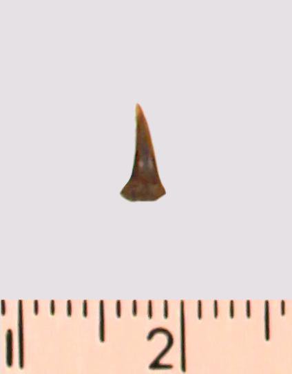 Зуб (фрагмент). Акула. Eostriatolamia gracilis (Davis, 1890). Классификация: Хордовые Chordata, Позвоночные Vertebrata, Хрящевые рыбы Chondrichthyes, Пластиножаберные Elasmobranchii