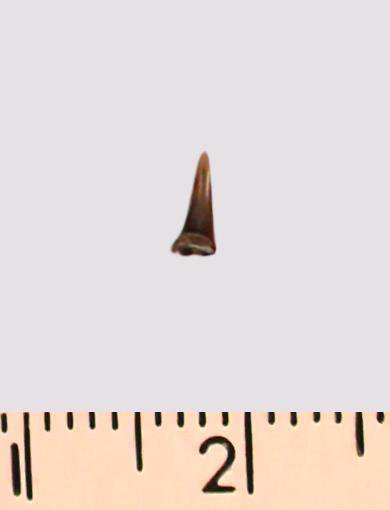 Зуб (фрагмент). Акула. Eostriatolamia gracilis (Davis, 1890). Классификация: Хордовые Chordata, Позвоночные Vertebrata, Хрящевые рыбы Chondrichthyes, Пластиножаберные Elasmobranchii