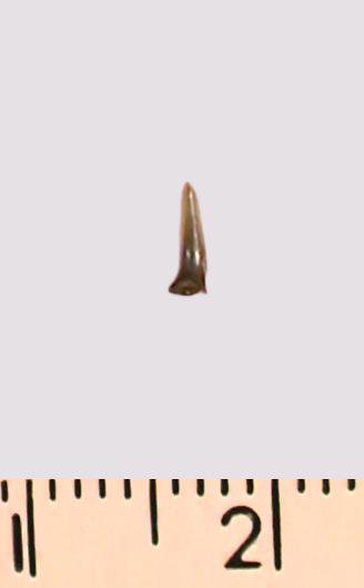 Зуб (фрагмент). Акула. Eostriatolamia gracilis (Davis, 1890). Классификация: Хордовые Chordata, Позвоночные Vertebrata, Хрящевые рыбы Chondrichthyes, Пластиножаберные Elasmobranchii