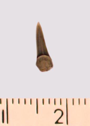 Зуб (фрагмент). Акула. Eostriatolamia gracilis (Davis, 1890). Классификация: Хордовые Chordata, Позвоночные Vertebrata, Хрящевые рыбы Chondrichthyes, Пластиножаберные Elasmobranchii