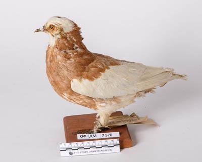 Чучело. Голубь дутыш сорочий палевый острохохлый. Классификация: Хордовые Chordata, Позвоночные Vertebrata, Птицы Aves, Голубеобразные Columbiformes, Голубиные Columbidae