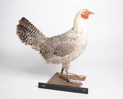 Чучело. Курица породы Чита-прест. Классификация: Хордовые Chordata, Позвоночные Vertebrata, Птицы Aves, Курообразные Galliformes, Фазановые Phasianidae
