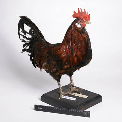 Чучело. Курица породы Тюрингская бородатая. Классификация: Хордовые Chordata, Позвоночные Vertebrata, Птицы Aves, Курообразные Galliformes, Фазановые Phasianidae